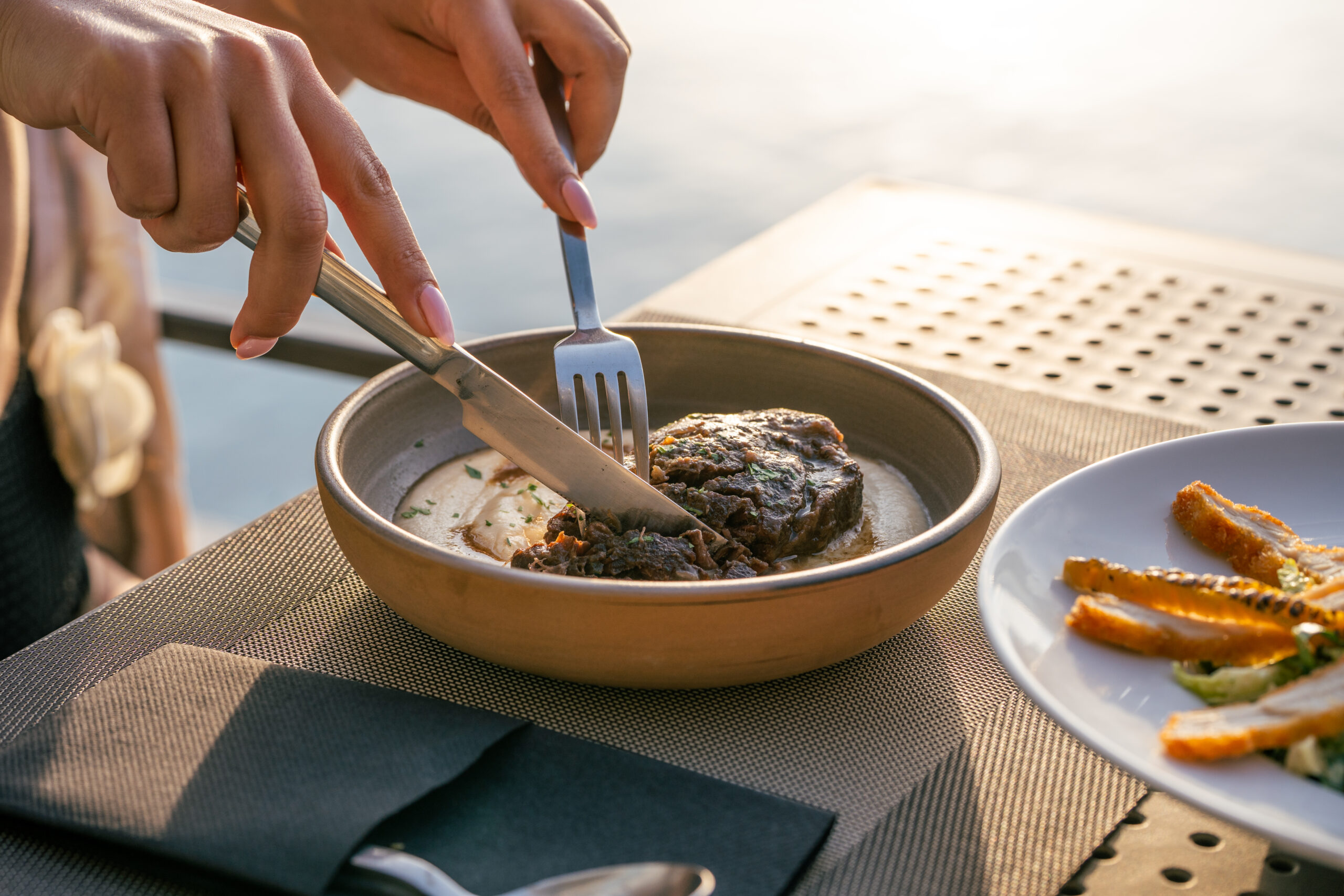 Nestled beside the pool and bathed in golden light, Serenità Comfort Food & Drinks offers a relaxed culinary experience inspired by the simplicity and warmth of Mediterranean living.